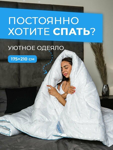 Все время хочется спать? Недостаток комфортного и качественного сна может сказаться на вашем общем самочувствии и продуктивности. Но не расстраивайтесь - мы знаем идеальное решение, которое сделает сон вашим лучшим другом. Наше одеяло, созданное с использованием силиконизированного полиэфирного волокна, принесет вам непревзойденный комфорт и оптимальную поддержку во время сна. Его легкость и воздушность создадут идеальный микроклимат, который поможет вам расслабиться и заснуть крепким сном. Сделайте здоровый и качественный сон вашим приоритетом. Покупка нашего одеяла станет лучшим решением для вас и вашего здоровья. Позвольте себе расслабиться, зарядиться энергией и просыпаться каждое утро свежим и бодрым. Не жертвуйте своим сном - наслаждайтесь каждой минутой в уютных объятиях комфорта и релаксации. Вы заслуживаете качественного сна, и наше одеяло будет вашим лучшим спутником на пути к этой цели. Почему же наше легкое и воздушное одеяло прекрасный выбор? В качестве наполнителя используется высококачественное силиконизированное полиэфирное волокно. Плотность наполнителя 300г/м, одеяла с данной плотностью являются всесезонными, но важный факт в том, что наполнитель подстраивается под температуру окружающей среды, в холода согревает, а жару бережет от перегрева и отдает необходимую прохладу. Вы не замерзнете даже в самую морозную ночь. Чехол одеяла из тика смесового ( 80%хлопок и 20% полиэфир , нити для стежки 40/2 100% п/э) - данный состав является одним из самых прочных и износостойких, а также очень нежный на ощупь. И даже если ваше постельное белье из сатина или шелка, одеяло не будет скользить. Силиконизированное полиэфирное волокно – это инновационный материал, который широко применяется в текстильной промышленности. Вот несколько особенностей и преимуществ этого волокна: 1. Воздухопроницаемость: обладает высокой степенью воздухопроницаемости, что способствует непрерывному циркуляции воздуха. Это предотвращает появление потогенерации и создает комфортный микроклимат во время сна. 2. Легкость: оно очень легкое, что делает одеяло легким и мягким. Благодаря этому, оно подарит вам нежные объятия и ощущение пушистости, не создавая ощущения тяжести или ограничения движений. 3. Гипоаллергенность: Это волокно идеально подходит для людей с аллергиями или чувствительной кожей. Оно гипоаллергенно и не вызывает аллергических реакций. Также гипоаллергенное одеяло это отличный подарок для беременных и детей. 4. Теплоизоляция: обладает отличной теплоизоляцией, что позволяет одеялу сохранять нужную температуру в любое время года. Оно эффективно удерживает тепло, обеспечивая вам комфортную температуру в холодные ночи. 5. Легкий уход: одеяла очень просты в уходе. Они легко моются в стиральной машине и быстро сохнут. Это делает их удобными и практичными в использовании. Наслаждайтесь комфортом и качеством нашего одеяла с силиконизированным полиэфирным волокном каждую ночь, прохладные вечера для создания уюта в кресле или на диване. Не упускайте возможность облегчить свою жизнь и повысить уровень комфорта с нашим всесезонным одеялом. Позвольте себе расслабиться и отдохнуть в мягком облаке комфорта, которое создано специально для вас. Представляем вам наше удивительно уютное и комфортное 1,5 спальное одеяло размером 145х210 см. Он