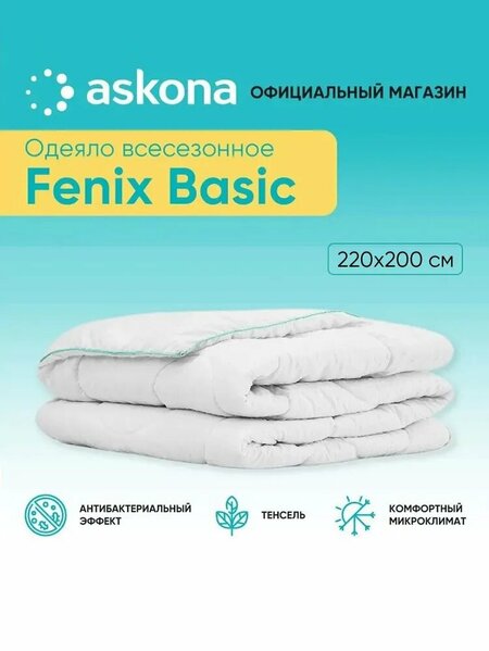 Чехол одеяла с микромассажным эффектом — это инновационное решение для улучшения качества сна и релаксации Волокна Tencel имеют микроскопические каналы, которые способствуют отличной циркуляции воздуха, что позволяет поддерживать оптимальный микроклимат во время сна О товаре Одеяло Fenix: окутывающая легкость – для здорового сна! Всесезонное одеяло Fenix – инновационный продукт от Askona. Мягкое и легкое, оно точно повторяет изгибы тела. Натуральный наполнитель Tencel отличается хорошей воздухопроницаемостью, поэтому под одеялом тепло зимой и прохладно летом. Чехол из 3D-микрофибры – с микромассажным эффектом, приятный на ощупь, не скатывается при длительной эксплуатации. Декоративный бирюзовый кант придает белому одеялу эффектность. Достоинства Fenix: