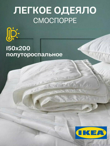 Достоинства:Взяли на замену пуховому одеялу (тоже икеа), были большие сомнения, потому что Смоспорре выглядит ну не солидно — что-то такое тонкое, как оно может греть? Но нет! Спится под ним превосходно, теплое и легкое. Недостатки:Нет Комментарий:Рекомендую к покупке