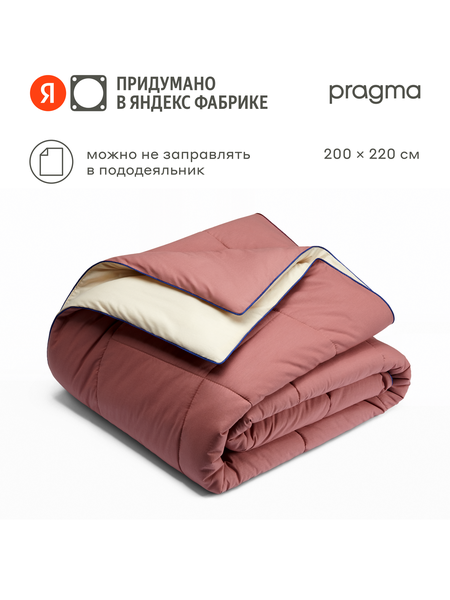 Pragma — это бренд эстетичных и функциональных решений для дома, придуманный в Яндексе. Одеяло-комфортер Pragma Pulek можно не заправлять в пододеяльник, а чтобы освежить, достаточно постирать при 40°. Можно использовать и как цветное одеяло, и как покрывало с двусторонним дизайном. С таким одеялом не нужно постоянно менять пододеяльники и легко заправлять кровать. Чехол из 100% хлопка — безопасный для кожи и приятный на ощупь. Материал прост в уходе: не выцветает и не деформируется. Наполнитель из полиэфирного волокна — упругий и мягкий, не сбивается в комки. Одеяло хорошо удерживает тепло и подходит для любого времени года: с ним будет комфортно и зимой, и летом. Не деформируется и быстро восстанавливает форму — достаточно взбить его руками после распаковки, хранения или сна. Волокна равномерно распределены по всей поверхности одеяла благодаря специальной стёжке. Перед первым использованием одеяло можно отпарить — так оно станет ещё мягче. Евроразмер 200х220 см — к одеялу можно легко подобрать комплект постельного белья. Вместе с подушкой из цветной коллекции Pulek получится тёплый и комфортный набор. Удобная и продуманная упаковка подойдёт и для хранения, и для подарка.