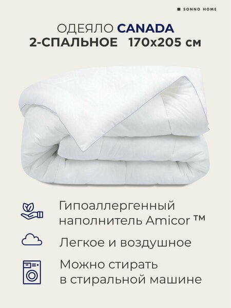 Одеяло Sonno Home Канада 2 спальное 170х205 см - это всесезонное и гипоаллергенное решение для комфортного сна. Одеяло выполнено из микрофибры, что обеспечивает мягкость и комфорт при использовании. Чехол одеяла окантован, что придает ему аккуратный и стильный вид. Наполнитель Amicor TM, состоящий из силиконизированного волокна, обеспечивает легкость и тепло, сохраняя при этом гипоаллергенность. Плотность наполнителя составляет 150 гр/м2, что гарантирует сохранение тепла и мягкость. Одеяло имеет ромбовидную стежку и окантовку, что придает ему стильный и современный вид. Стирка одеяла возможна при температуре 40 градусов, что позволяет сохранить его качество и свойства. Выбирая одеяло Sonno Home Канада, вы получаете качественный и комфортный продукт для своего дома.