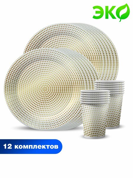 Одноразовая посуда для праздника ND Play "Золотой горох" (тарелка 23 см, стакан 250 мл, по 12 шт.)