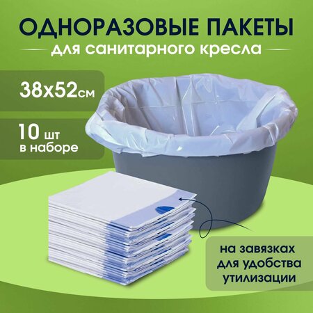 В упаковке содержится 10 штук одноразовых пакетов для кресел-туалетов, что обеспечивает длительное использование и экономичность. Наши пакеты удобны в применении, что делает процесс ухода за близкими более комфортным и эффективным.
