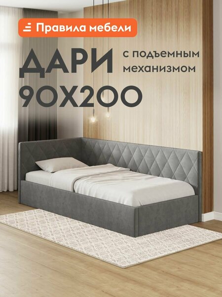 Тахта Дари ПМ украсит интерьер любой комнаты. Днем модель послужит комфортабельным местом для отдыха, а на время сна заменит полноценную кровать. Подъемный механизм обеспечивает легкий доступ к коробу для белья. Каркас обит приятным на ощупь материалом, а спинка и боковина декорированы ромбовидной стежкой, которая создает уютные акценты меблировки. Характеристики: