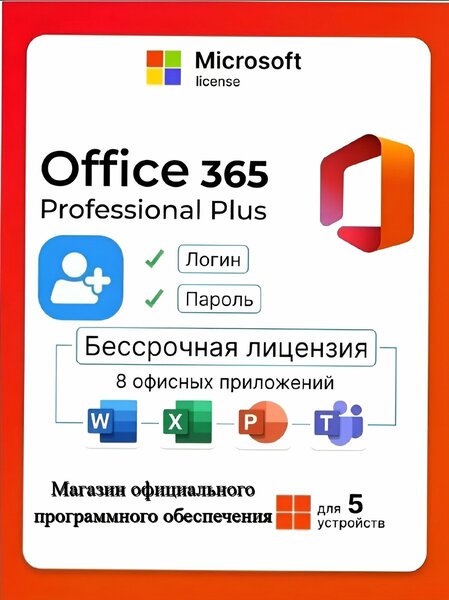 Готовая учетная запись Microsoft Office 365. важно! Срок гарантии на данный аккаунт 6 месяцев с момента покупки! (Они бессрочные, но гарантия такая, также не советуем хранить важные данные на облаке и на облако гарантия не распространяется). Активация офис 365 происходит с помощью понятной инструкции и подходит для платформ Windows 10, Windows 11 (разрядность x32/x64), MacOS, iOS, Android. Данная версия MS office подходит для одного пользователя, однако можно подключить до 15 устройств на разных операционных системаx. Программное обеспечение Майкрософт Офис 365 включает в себя учетную запись и пакет офисных приложений, таких как: -Microsoft Word. -Microsoft Excel. -Microsoft PowerPoint. -Microsoft Outlook, -Microsoft Teams. -Microsoft OneNote. -Microsoft Access. -Microsoft Publisher. *Облачные сервисы могут быть не доступны на территории Российской Федерации (Остальные продукты Microsoft доступны для использования по подписке Office 365. Лицензия Microsoft Office 365 не включает в себя цифровой ключ продукта. Это аккаунт! Данный продукт не совместим с версиями Microsoft Office 365 Family (Для семьи) и Microsoft Office 365 Personal (Персональный), а также не является версиями Microsoft Office 2019 и Microsoft Office 2021.