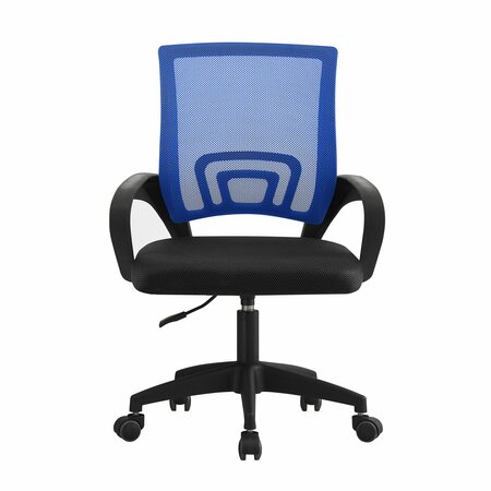 Офисное кресло мягкое со спинкой на колесиках СтулБержи, сетка, ткань, спинка и сиденье - синий, ручки и ножки - черный
