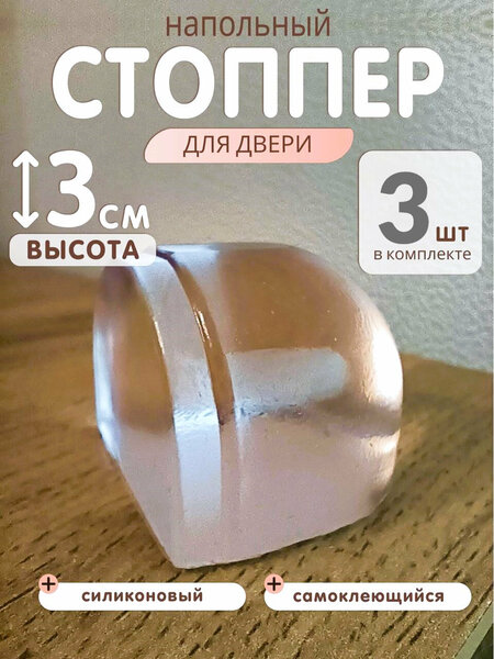 Стоппер для двери напольный — идеальное решение для дверей с увеличенным зазором от пола. САМЫЙ ВЫСОКИЙ 3 см Ограничитель для двери предназначен для предотвращения шума и защиты стен от повреждений. Силиконовый ограничитель полностью прозрачный и позволяет ему гармонично вписаться в любой интерьер, оставаясь почти невидимым на поверхности. Благодаря инновационной самоклеящейся основе, дверной стоппер легко устанавливается без сверления. Измерьте зазор между полотном двери и полом, обезжирьте поверхность пола, отклейте защитную пленку и прижмите ограничитель на выбранное место. Стопор для двери отлично приклеивается на любые гладкие покрытия, включая плитку, паркет, ламинат и другие. Напольный стоппер высотой 3 см подходит для дверей с зазором от пола до 2,5 см. Этот силиконовый ограничитель за счет отсутствия пластиковых вставок обладает бесшумными свойствами. Силиконовый самоклеющийся стоппер не теряет своих свойств даже при повторном использовании – да, его при необходимости можно переклеить. Дверной отбойник не боится контакта с водой и не ржавеет в отличии от металлических. А в отличие от моделей с жесткой пластиковой вставкой, этот дверной демпфер абсолютно бесшумен. Ограничитель для двери напольный — это стильный функциональный аксессуар, который помогает поддерживать порядок и спокойствие в вашем доме. Выбирайте ваши стопперы по бренду VOZOROM.