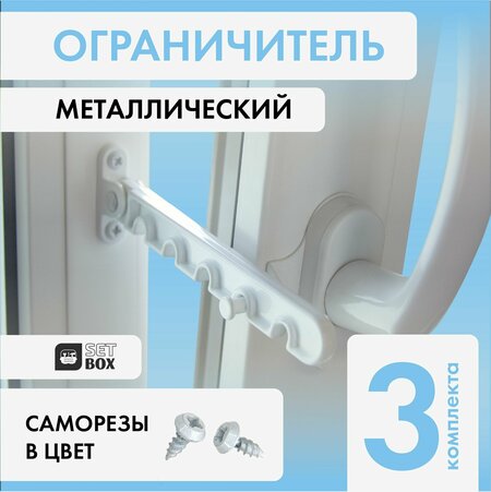 Ограничитель металлический оконный - инструмент для фиксации открывания створки окна. Ограничители отлично подойдут для пластиковых окон и двери. Это основной элемент оконной фурнитуры для регулировки проветривания помещения. Также ограничители для окон играют роль стопора - защищает пластиковые окна и двери при сквозняках и резких порывах ветра. Ограничитель на окно ставят и как блокиратор самопроизвольного открытия створки, тем самым предотвращая вероятность выпадения из окна или застревания между створкой и рамой в режиме проветривания. Фиксатор подойдет не только для полноразмерного окна пластикового, но и для форточки. В комплекте идет гребенка, ответная часть и саморезы в цвет. Его очень легко установить на изделия из ПВХ - пластиковое окно и балконную дверь: гребенка для современных окон устанавливается на оконную раму (гребешок отверстиями вниз), а металлическая часть под оконную ручку. Если используется как дверной ограничитель - гребенка ставится на дверную раму, а ответная часть под ручку двери.