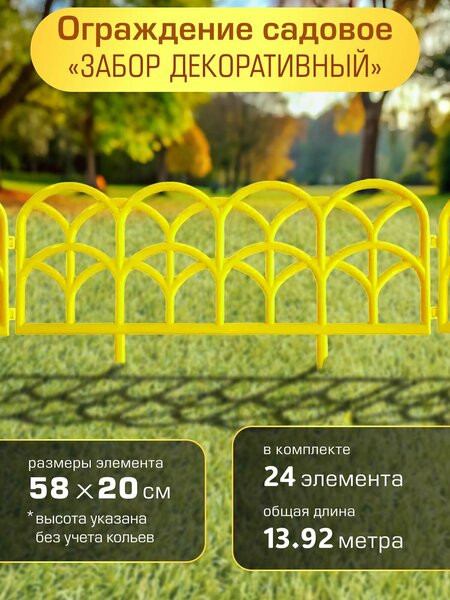 Садовый заборчик поможет облагородить дачный участок, придать ему ухоженный и нарядный вид. Пластиковое ограждение - идеальный вариант для зонирования и ограждения клумб, газонов и цветников. Пластиковая конструкция легко монтируется и при необходимости может быть разобрана и перенесена на другое место. Современный пластик не боится ни жары, ни холода, ни атмосферных осадков, не теряет своей привлекательности долгие годы эксплуатации, не трескается от перепадов температур. Характеристики: Длина: 58 см Высота: 20 см В комплекте - 24 секции
