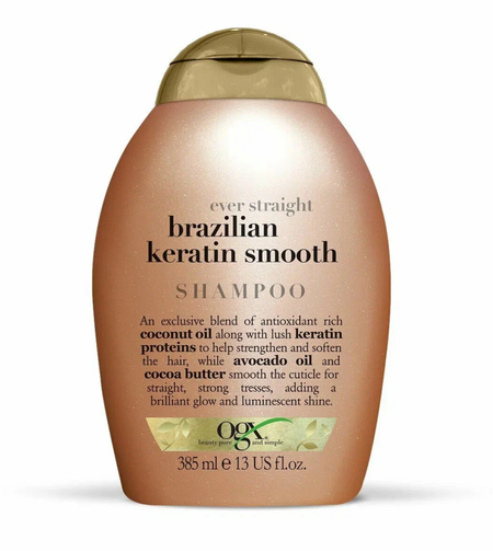 массажными движениями нанесите шампунь на влажные волосы, тщательно смойте, для достижения наилучшего результата используйте вместе с разглаживающим и кондиционером для укрепления волос "Бразильский кератин" и другими продуктами марки OGX
