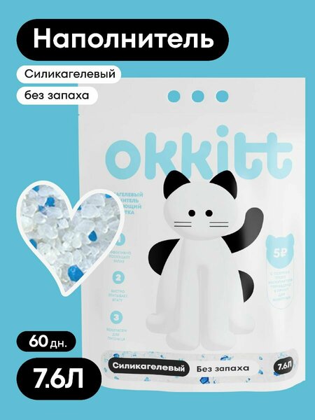 Okkitt Наполнитель Силикагелевый Впитывающий Без Запаха 3200г. 1 шт.