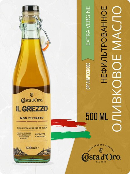 Оливковое масло Costa d'Oro Il Grezzo Экстра — это нерафинированное оливковое масло высшего качества, созданное с использованием традиционных методов холодного отжима. Масло Il Grezzo получено из первого отжима оливок, при этом оно сохраняет все природные качества и всю пользу натуральных оливок. Особенности масла Costa d'Oro Il Grezzo: технология холодного отжима обеспечивает минимальную обработку масла, сохраняя его натуральный аромат и полезные свойства; идеально для заправки супов, салатов, карпаччо; оливковое масло экстра, что подтверждает его высокое качество и стандарты производства; Добавьте масло оливковое Costa d'Oro Il Grezzo в ваши кулинарные композиции, чтобы придать им неповторимый вкус и аромат Италии. Это масло оливковое extra virgin высшего качества, которое поможет вам достичь великолепных результатов в кулинарии.