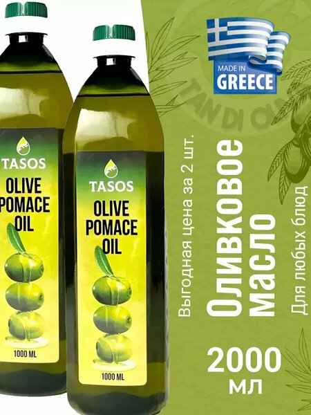 Оливковое масло Tasos Olive Pomace Oil – это высококачественное рафинированное масло, изготовленное из выжимок оливок, с добавлением нерафинированного оливкового масла Extra Virgin. Теперь у вас есть возможность приобрести сразу две бутылки этого замечательного масла по выгодной цене!