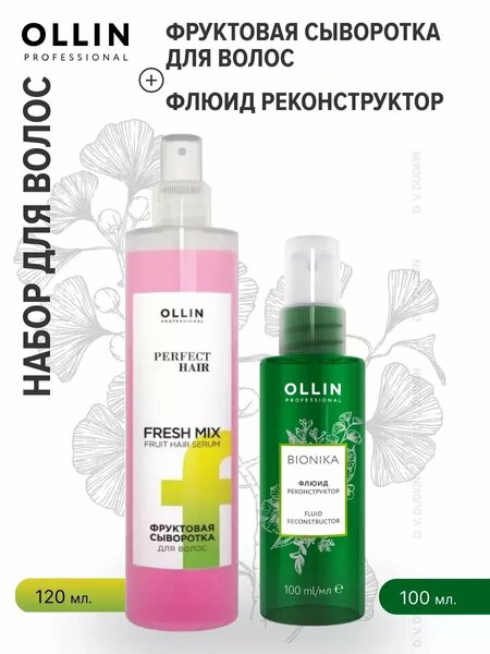 Ollin Professional Набор для волос: Флюид реконструктор, 100 мл и Фруктовая сыворотка, 120 мл