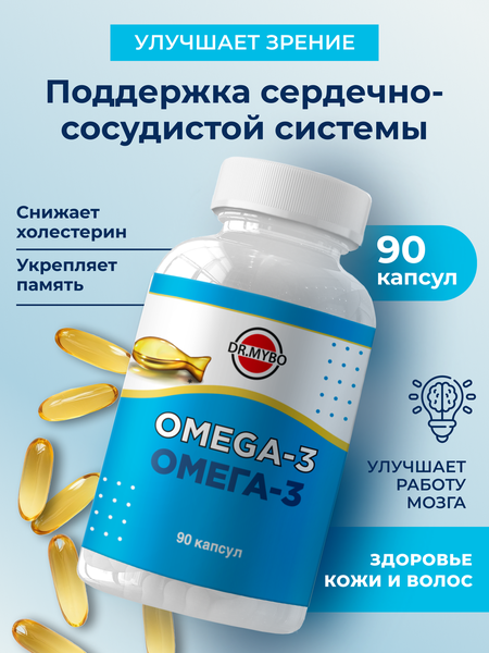 Польза капсул Omega-3 Доктор Майбо: -снижение риска заболевания сердечно-сосудистой системы; -снижение риска образования тромбов; -предотвращение образования бляшек в артериях; -снижение уровня триглицеридов; -замедление выработки веществ, которые высвобождаются во время воспалительной реакции.