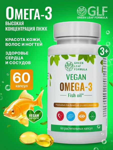 Омега 3 рыбий жир в капсулах ВЕГАН - витамины для детей от 3 лет и взрослых. 55% концентрат Омега-3 рыбного жира в форме этилового эфира с оптимальным содержанием ПНЖК. ЭПК (эйкозапентаеновая кислота ) 165 мг, ДГК (докозагексаеновая кислота ) 110 мг в 1 капсуле в растительной капсуле. Рыбный жир в продукте произведен из мышечной ткани мелких пород диких рыб, таких как: корюшкообразные, ставридовые, сельдеобразные, окунеобразные. Для лучшей очистки рыбного жира от солей тяжелых металлов и аллергенов, компания-поставщик применяет метод молекулярной дистилляции, который гарантирует сохранение структуры жирных кислот. Основные функции Омега-3 ПНЖК: - требуются для нормального функционирования мозга и улучшения его кровообращения, поскольку быстро обеспечивают приток энергии, необходимой для передачи импульсов, передающих сигнал от клетки к клетке. Это позволяет повысить мыслительные способности, когнитивные функции (память, внимание, обучаемость); - нужны для сердечно-сосудистой деятельности организма: эффективно для снижения холестерина и триглицеридов крови, профилактики атеросклероза, гипертонической болезни и других сердечно-сосудистых заболеваний, предотвращения тромбообразования; - дефицит ПНЖК у детей ведет к задержке роста и развития, изменениям со стороны кожи, снижению иммунитета; - формируют адекватную ответную реакцию клеток на действие внешних патогенных факторов; - предупреждают развитие воспаления, уменьшают агрегацию эритроцитов, стимулируют расслабление эндотелиальных клеток стенок кровяных сосудов; - нормализуют липидный обмен (снижают уровень триглицеридов и липопротеидов очень низкой плотности в плазме крови, повышают уровень липопротеидов высокой плотности); - участвуют в обеспечении функционирования клеточных мембран, влияют на их текучесть; - для улучшения состояния кожи и волос. ЭПК и ДГК (главные Омега-3) широко используют в терапии хронических воспалительных заболеваний кожи (псориаз, атопический дерматит, акне и др.); - для укрепления иммунной системы. Омега-3 жирные кислоты не синтезируются в организме человека и крайне важно ежедневно получать их в достаточном количестве с пищей. ОМЕГА-3 КАК ИСТОЧНИК ДОЛГОЛЕТИЯ И КРАСОТЫ. Существует доказательная база, достаточная для утверждения, что каждый человек, проживающий в регионе с обедненным содержанием Омега-3 ПНЖК в рационе (в том числе вся территория России), должен дополнительно к пище принимать препараты с ЭПК и ДГК для профилактики возраст-ассоциированных заболеваний, неинфекционных хронических патологий, увеличения продолжительности и качества жизни в целом. Форма выпуска: 60 капсул по 500 мг. Препарат не содержит: диоксид титана, химический краситель, ГМО, сою, глютен, продукты животного происхождения.