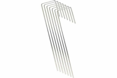Садовые скобы - это универсальные крепежные элементы, предназначенные для надежного крепления (укрепления) различных материалов в саду, например, геотекстиля, агроткани, шлангов, укрывного материала и пленки. Изготовлены из металла - оцинкованной стали, что делает их прочными и долговечными. Имеют Г-образную форму колышка или штыря, который легко втыкается в землю либо другую поверхность. Идеально подходят для фиксации укрытий на грядках, в парниках или в открытом грунте. Могут использоваться для крепления растений, чтобы предотвратить их опрокидывание или повреждение во время сильного ветра или дождя. Помогают в уходе за садом. Просты в использовании. Упаковка 50 штук позволяет применять их в больших объемах и обеспечивает долговременный запас для нужд в саду. Можно использовать во время активного отдыха, туризма, рыбалки как колышки для палатки. Колышки для агроткани. Помогут сохранить порядок и защитить ваши растения, создавая оптимальные условия для их роста и развития. Вид: скоба. Высота скобы: 16 см. Внешняя ширина скобы: 4 см. Количество в упаковке: 50. Материал: оцинкованная сталь. Цвет: серебристый. Габариты без упаковки: 185x85x40 мм. Вес нетто: 0.65 кг. Комплектация: Скобы - 50 шт.
