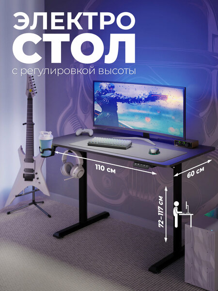 Компьютерный стол / Игровой стол / Геймерский стол VOLT , подставки под кружку, регулируемая высота