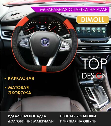 Оплетка (чехол) на D-руль каркасная Changan CS35PLUS 2018 - н. в. экокожа, черная с красной вставкой