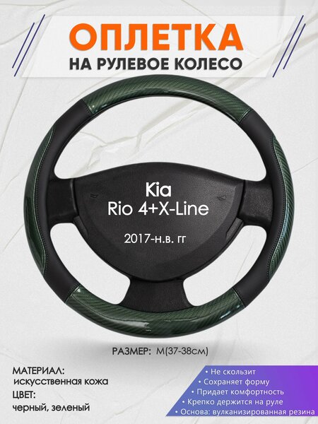 Оплетка на рулевое колесо (накидка, чехол на руль) для Kia Rio 4+X-Line(Киа Рио 4 / Икс Лайн) 2017, 2018, 2019, 2020, 2021, 2022, 2023 годов выпуска, размер M(37-38см) материал: искусственная кожа. Цвет: черный; зеленый. Оплётка имеет жесткую прорезиненную основу, благодаря этому оплётка плотно прилегает к рулю. Оплетка на руль является стильным добавлением к интерьеру вашего автомобиля, а также функциональным аксессуаром, который может улучшить вашу езду и комфорт во время вождения. Улучшите ваш водительский опыт с помощью этой высококачественной оплетки. Сделанная из прочного и износостойкого материала, она обеспечивает надежное сцепление, минимизируя скольжение рук. Оплетка имеет стильный дизайн, добавляющий элегантность и индивидуальность к вашему автомобилю. Вы можете выбрать из различных цветов и отделок, чтобы подобрать оплетку под свой вкус и стиль интерьера авто. Простая установка позволяет вам быстро обновить руль вашего автомобиля без необходимости обращаться к специалистам. Независимо от того, хотите ли вы защитить руль от повреждений, добавить комфортности и стиля к вашему автомобилю или просто ощутить новые ощущения во время вождения, данная оплетка является отличным выбором. Автомобильная оплетка – популярный аксессуар для автомобилей, обладающий рядом преимуществ: Удобный захват: Оплетка на руль автомобиля создана для повышения комфорта во время вождения. Она имеет тактильно приятную поверхность, обеспечивающую лучший захват руля. Защита: Оплетка руля служит защитным слоем, предохраняющим оригинальный руль от износа, вызванного постоянным использованием. Она помогает предотвратить повреждения от разных факторов, таких как солнечный свет, пот и трение, тем самым продлевая срок службы руля. Эстетика: Добавив автомобильную оплетку, вы можете придать интерьеру вашего автомобиля стильный и индивидуальный вид. Наши оплетки доступны в широком ассортименте цветов, материалов и дизайнов, позволяя вам выбрать ту, которая гармонирует с общим внешним видом вашего автомобиля. Простая установка: Оплетки для руля легко устанавливаются и не требуют профессиональной помощи. Легкость в уходе: Большинство автомобильных оплеток для руля легко моются и чистятся. Вы можете просто протереть их влажной тряпкой или использовать специальные средства для ухода за кожей или тканью, чтобы сохранить их чистоту и свежий вид. В целом, данный автомобильный аксессуар предоставляет комфортное, защитное и эстетически приятное дополнение к интерьеру вашего автомобиля. Она дает улучшенный захват, защищает руль, улучшает интерьер автомобиля, обеспечивая приятный опыт вождения.