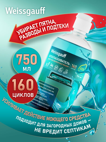 Специальный ополаскиватель для посудомоечных машин Weissgauff ECO благодаря экологически чистому составу можно использовать в БИО септиках. Натуральные компоненты, входящие в состав ополаскивателя для посудомоечных машин, обеспечивают максимальный блеск и дезинфекцию, эффективно действуя на нагретой посуде. Обеспечивают быстрое высыхание без подтеков, пятен, известковых отложений. Основное активное вещество ополаскивателя — лимонная кислота. Благодаря натуральным компонентам ополаскиватель не повреждает посуду, поэтому его можно использовать регулярно для поддержания посуды в чистоте и придания ей естественного блеска. Безопасен для окружающей среды, биологически перерабатывается более чем на 90%. Способ применения: влейте в распределитель моющих средств посудомоечной машины количество, рекомендуемое производителем техники. Не превышайте рекомендованное количество. Меры предосторожности: хранить в недоступном для детей месте. При использовании средства защищать руки резиновыми перчатками. В случае попадания в глаза или на слизистую полость рта, промыть большим количеством воды. Не принимать внутрь.
