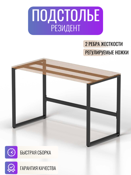 Подстолье Резидент – практичная стильная опора для стола, на которую устанавливается столешница. С помощью опоры для стола резидент и различных столешниц (из ЛДСП, МДФ, мебельного щита, пластика) можно собрать письменный стол, обеденный стол, кухонный стол, компьютерный стол, офисный стол, письменный стол для школьника, туалетный столик или даже использовать как подстолье для барной стойки – всё зависит только от Вашей задумки! В классическом варианте со Столешницей Резидент цвета бунратти - этот стол в стиле сканди, в стиле loft. Но если подобрать столешницу других цветов и фактуры – это стол обретет совершенно новый облик. • Рама подстолья имеет два ребра жесткости, это исключает возможность продавленности из-за высокой нагрузки. • Форма боковин - квадратная, благодаря этому она устойчива к колебаниям и не шатается, в отличие от П-образных подстольев или прикручивающихся ножек. • Опоры для стола такой конструкции с легкостью выдерживают нагрузку до 150 кг. • Дополнительную надежность подстолью придаёт стяжка. • Мебельные ножки для стола Резидент – регулируемые (позволяют корректировать высоту до 2см!). • Подстолье выполнено из стального профиля размером 40*20 мм, покрыты безопасной, ударопрочной матовой краской. • Лёгкость сборки. Опоры для стола поставляются в разобранном виде. В комплекте вся необходимая для сборки мебельная фурнитура, включая ключ для сборки и инструкцию. Металлическое подстолье Резидент выполнено в стандартных размерах, подойдёт для столешниц различных размеров: Ширина 118 см Высота 73 см Глубина 57 см.
