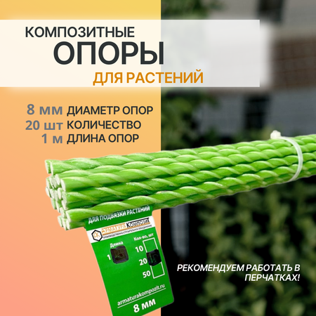 Опоры Садовые 8 мм, 20 штук по 1 м для подвязки растений композитные (колышки) "Арматура Композит"