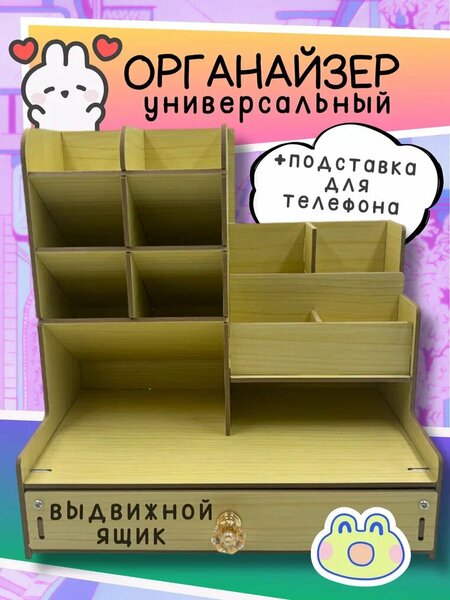 Органайзер для канцелярии Axler - незаменимый аксессуар для стола школьника, студента и взрослого, который пригодится дома и в офисе. Он идеален для организации рабочего пространства. Органайзер универсален, поэтому подойдет как для девочек и мальчиков, так и для мужчин и женщин. Настольная подставка пригодится для хранения канцелярии – ручек и карандашей, скрепок, ножниц и других письменных принадлежностей. Она незаменима для тех, кто занимается творчеством - шитьем, рукоделием, скетчингом. Например, художнику в карандашнице будет удобно хранить кисти, фломастеры и другие аксессуары для рисования и предметы для художественных работ. Большой деревянный органайзер оснащен 11 секциями, в которые можно складывать не только канцтовары, но и косметику, бижутерию. В выдвижном ящичке можно хранить небольшие блокноты, украшения и косметические средства. Ящики легко и плавно выдвигаются, поэтому вы с легкостью достанете необходимые вещи и мелочи. Контейнер с отсеками для канцелярских принадлежностей отличается стильным эстетичным дизайном, который впишется как в лаконичный, так и в творческий интерьер. Внешний вид всегда можно разнообразить - нарисовать узор маркером или наклеить стикер. В магазине Акслер также представлены детские товары для школы и офисные принадлежности.