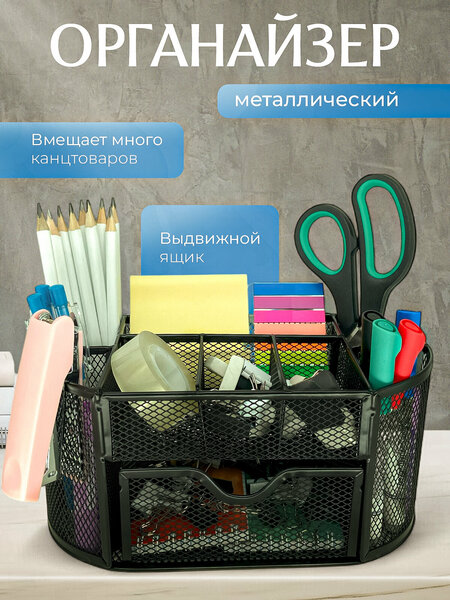 Элегантная и прочная металлическая подставка-органайзер идеально подойдет для хранения канцелярских, письменных и косметических принадлежностей. Она не только стильно украсит ваш рабочий или косметический стол дома или на работе, но и обеспечит удобство в использовании. Изготовленная из металлической сетки, она имеет 7 отделений и представлена в элегантном черном цвете с качественным покрытием. Безопасные закругленные края и высококачественная обработка делают этот органайзер идеальным выбором для хранения и организации ручек, карандашей, кистей и косметических аксессуаров. Идеальный подарок на новый год (нг) для себя и близких.