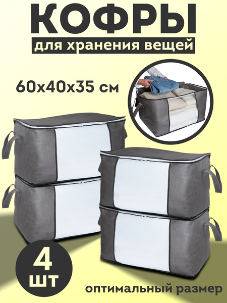 Органайзер для хранения вещей , Кофр для хранения белья и одежды , серый, 4шт, 60x40x35 см