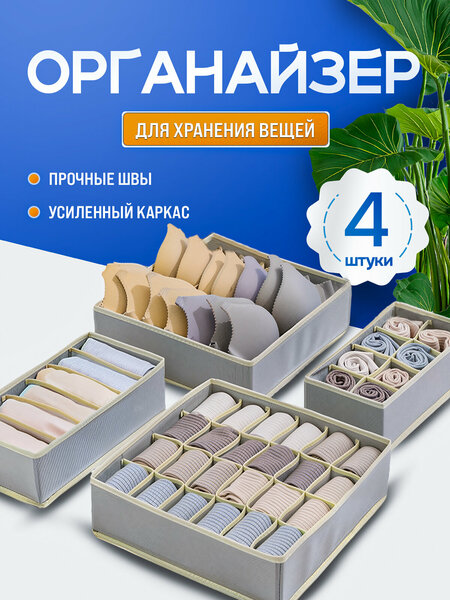 {"widgets":{"@card/UniversalPromoBadge":{"/content/page/fancyPage/universalPromoBadge":{"wrapperProps":{"margins":{"bottom":"3"}},"initialTime":1759979719209,"offerComposeId":"1365181612"}}},"meta":{"/content/page/fancyPage/universalPromoBadge":{"name":"@card/UniversalPromoBadge"}},"collections":{"productServiceSnippets":{"1365181612":{"productSnippet":{"type":"MODEL_CARD_LAYOUT","productPayload":{"snippetStyle":"NORMAL","title":{"value":"Органайзер для хранения вещей, белья и одежды, 4 шт, цвет серый"},"badges":{},"gallery":{"mediaItems":[{"picture":{"baseUrl":"https://avatars.mds.yandex.net/get-mpic/16537464/2a0000019864779446850be1bb8f4989cbee/","width":1200,"height":1600,"title":"Органайзер для хранения вещей, белья и одежды, 4 шт, цвет серый"},"type":"IMAGE"},{"picture":{"baseUrl":"https://avatars.mds.yandex.net/get-mpic/16537464/2a000001986477944dd1236f9068137e9904/","width":1200,"height":1600,"title":"Органайзер для хранения вещей, белья и одежды, 4 шт, цвет серый"},"type":"IMAGE"},{"picture":{"baseUrl":"https://avatars.mds.yandex.net/get-mpic/14110297/2a000001986477944ede05c0da7a099d8ea1/","width":1200,"height":1600,"title":"Органайзер для хранения вещей, белья и одежды, 4 шт, цвет серый"},"type":"IMAGE"}],"galleryType":"VISUAL"},"rating":{"ratingValue":5,"ratingCount":16,"reviewsCount":11,"ratingCountStats":{"cnt1":0,"cnt2":0,"cnt3":0,"cnt4":0,"cnt5":16}},"wishlistButton":{"businessId":213459211,"mskuId":4560867731,"modelId":1365181612,"oskuId":4560867731}},"baobabPayload":{"type":"offer","wareId":"out-of-stock","modelId":1365181612,"marketSku":"4560867731","snippet_type":"product","isExpress":false,"vendorId":15728405,"hid":61047165,"isUltima":false,"oskuId":4560867731}}}}}}