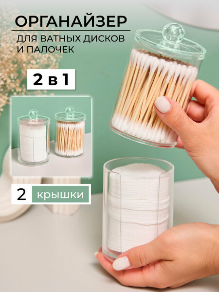 Органайзер для ватных палочек и дисков, прозрачный, двойной, объем 30мл