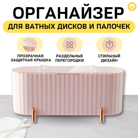 Органайзер для ватных дисков, палочек и спонжиков - стильный и практичный аксессуар для хранения косметических принадлежностей. Скандинавский дизайн органайзера гармонично впишутся в интерьер ванной комнаты, кухни, спальни, прихожей, детской комнаты, кабинета или туалетного столика. Прочный пластиковый контейнер оснащен крышкой и устойчивыми ножками золотистого цвета. Прозрачная защитная крышка препятствует попаданию влаги и пыли, сохраняя аксессуары чистыми и сухими. Органайзер может использоваться как декор для дома, добавляя оригинальности и функциональности. В нем можно хранить помады, расчески, карандаши, тушь, подводку, тени, консилеры, кисти, канцелярию, резинки, заколки, различные мелочи, маникюрные принадлежности и уходовую косметику. Настольный органайзер с крышкой многофункционален и вместителен, несмотря на свои компактные размеры. Он может использоваться как подставка для косметики, стакан для кистей для макияжа, подставка для канцелярии, органайзер для мелочей, подставка для расчесок, органайзер для канцелярии, органайзер для кистей, шкатулка для украшений. Контейнер для ванной удобен и приятен в использовании. Стакан для косметики упакован в крафт-коробку, что позволяет использовать его в качестве подарка себе или близким на любой праздник. Оригинальный дизайн органайзера станет изысканным акцентом в интерьере и будет радовать Вас и Ваших гостей.
