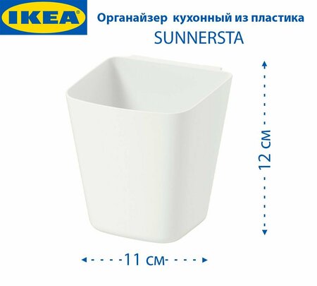 Органайзер IKEA - SUNNERSTA (суннерста), для кухни, цвет белый, 12 х 11 см, 1 шт. Когда важен каждый сантиметр, на помощь приходят аксессуары SUNNERSTA с возможностями хранения, благодаря которым все будет под рукой, а ваша рабочая поверхность не будет загромождена. Информация о упаковке Высота: 12 см Длина: 13 см Вес нетто: 0,08 кг Объем: 1,8 л Вес: 0,08 кг Ширина: 12 см Количество упаковок: 1