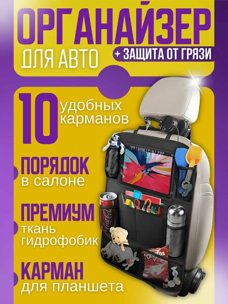 Идеальное решение для поддержания порядка в вашем автомобиле — многофункциональный автомобильный органайзер на спинку сиденья! Этот практичный аксессуар обеспечит вам хранение и организацию всех необходимых вещей в автомобиле и станет настоящей находкой для семей с детьми. Наш автомобильный органайзер отличается прочными материалами, которые выдержат всё — от активных ног маленьких пассажиров до сильных загрязнений. Он надёжно защитит спинку сиденья от грязной обуви, предотвратит появление пятен от еды и напитков. Этот органайзер оснащён 10 карманами, которые идеально подходят для размещения планшета (телефона), хранения игрушек, книг, бутылок и многих других мелочей, необходимых в дороге. Благодаря надёжному креплению, органайзер остаётся на месте даже в самых активных поездках, обеспечивая удобный доступ ко всем важным вещам. Неотъемлемый аксессуар для вашего автомобиля в сезон проливных дождей, осенней и зимней слякоти, особенно для семейных поездок с детьми на дачу или в дальние поездки. Не упустите возможность улучшить комфорт каждого путешествия с помощью нашего автомобильного органайзера. Защитите своё авто от беспорядка и наслаждайтесь идеальной организацией пространства в любой поездке!