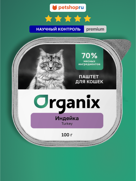 Наши профессиональные нутрициологи и технологи разработали специальную формулу консервов для обеспечения всех питательных потребностей кошек. Премиум паштеты Organix приготовлены из тщательно отобранных сортов мяса. Специальная обработка помогает сохранять корм длительное время. Premium паштет с индейкой содержит 70% мяса. Подходит для кошек от 1 года. Преимущества: