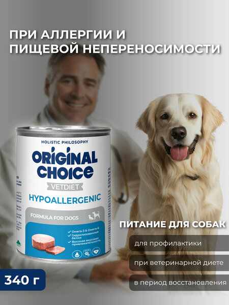ORIGINAL CHOICE VETDIET Hypoallergenic – это ветеринарная диета для собак, разработанная специально для животных с пищевой аллергией или непереносимостью. Этот полнорационный консервированный корм обеспечивает полноценное питание и заботу о здоровье вашего питомца. ORIGINAL CHOICE VETDIET Hypoallergenic содержит ОМЕГА-3 и ОМЕГА-6 жирные кислоты, которые способствуют здоровью и восстановлению кожного покрова и шерсти собаки. Эти компоненты содержатся в льняном масле и рыбьем жире, которые входят в состав корма. Особенностью корма является гидролизованный белок. Гидролизация белков (их расщепление на мелкие компоненты) повышает усвояемость и исключает риск аллергии у животного. Корм ORIGINAL CHOICE VETDIET Hypoallergenic обладает высокой вкусовой привлекательностью благодаря высококачественным мясным ингредиентам в его рецептуре. Это делает его особенно привлекательным для собак, которые предпочитают вкусную пищу. Для обеспечения здоровья и благополучия вашего питомца, рекомендуется проконсультироваться с ветеринарным врачом об использовании данного корма и о продлении периода его применения. У животного всегда должен быть доступ к свежей питьевой воде.