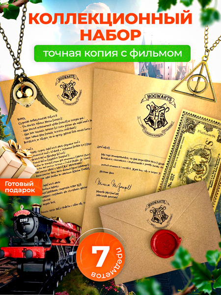 Оригинальное письмо из Хогвартса для самозаполнения + билет на Хогвартс-экспресс + кулоны Снитч и Дары Смерти Гарри Поттер / Harry Potter