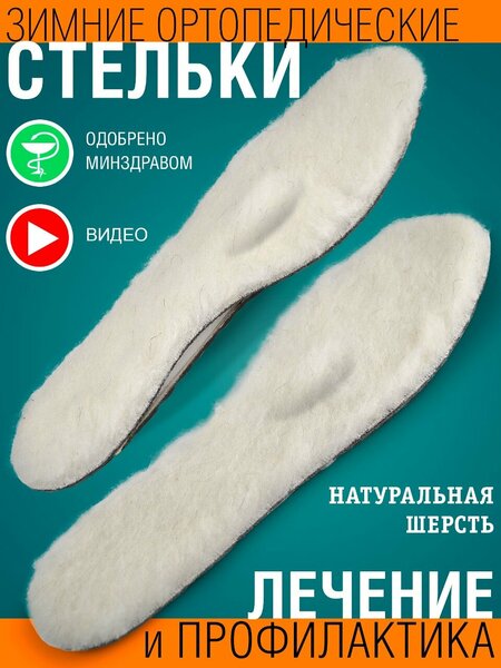 Ортопедические стельки при плоскостопии предназначены для зимней и демисезонной обуви, в том числе на каблуке до 7 см. Стельки имеют мягкий пелот для бережной поддержки сводов стопы. Основа стеле - латексная пена с добавлением древесного угля, нейтрализующего запах и уменьшающего влажность в обуви, верхнее покрытие - натуральная высококачественная овечья шерсть. Стельки зимние применяются при продольно-поперечном плоскостопии, деформации стоп, неприятных ощущений при ходьбе любой этиологии, а также в целях профилактики образования мозолей и натоптышей в переднем отделе стопы и увеличения распластанности переднего отдела стопы. Рекомендации по уходу: протирать влажной салфеткой с использованием мягких моющих средств; сушить вдали от нагревательных приборов; хранить изделие в сухом и чистом месте; не подвергать изделие высокой температуре, влажности и пыли, оберегать от воздействия прямых солнечных лучей.