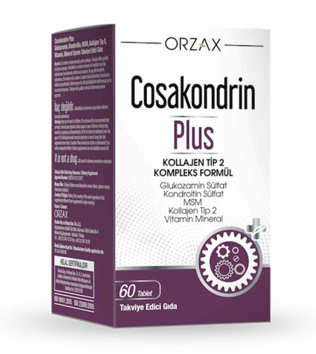 ORZAX COSAKONDRIN PLUS Препарат, содержащий Глюкозамин, Хондроитин, МСМ и Коллаген в указанных дозировках, может иметь несколько потенциальных преимуществ для здоровья суставов и соединительных тканей. Ниже представлен обзор основных преимуществ данной биодобавки: 1. Поддержка суставов: Глюкозамин и Хондроитин - это ключевые компоненты, которые широко известны своей способностью поддерживать здоровье суставов. Глюкозамин способствует образованию хрящевой ткани и помогает снизить дискомфорт и болевые ощущения в суставах. Хондроитин, в свою очередь, участвует в образовании хряща и поддерживает его структуру. 2. Укрепление соединительных тканей: Коллаген – это белок, составляющий основную часть соединительных тканей, таких как кожа, сухожилия, связки и суставы. Дополнительный прием коллагена может помочь укрепить и поддержать эти ткани, что может способствовать их более эффективной работе. 3. Улучшение подвижности: Продукт, содержащий Глюкозамин, Хондроитин и МСМ, может помочь улучшить подвижность суставов и гибкость. Эти компоненты способствуют сохранению хрящевой ткани и смазывают суставы, что может снизить ограничения движения. 4. Антиоксидантная защита: МСМ (Метилсульфонилметан) - это естественный источник органического сера, который является антиоксидантом. Он может помочь защитить клетки от повреждений, вызванных свободными радикалами, и таким образом, поддерживать здоровье соединительных тканей. 5. Поддержка кожи: Коллаген 2 типа имеет важное значение для здоровья кожи, особенно внутренних слоев кожи. Его прием может способствовать укреплению структуры кожи, поддерживать ее упругость и улучшать общее состояние. 6. Дополнительная информация: Важно отметить, что эффективность и преимущества этой биодобавки могут различаться в зависимости от индивидуальных потребностей организма и состояния здоровья. Результаты могут быть индивидуальными, и важно проконсультироваться с медицинским специалистом перед началом приема данного продукта. **Помните, что любую биодобавку или препаратов следует использовать только после консультации с врачом, особенно если у вас есть медицинские проблемы или вы принимаете другие лекарства.**