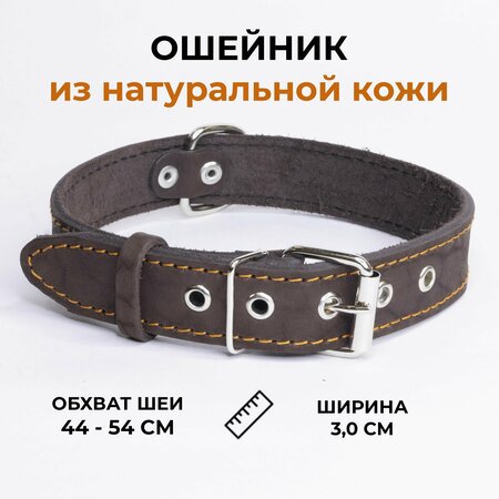 Ошейник для собак из натуральной кожи. Ошейник сделан из прочной телячьей кожи, что способствует повышенным износостойким характеристикам. Фурнитура ошейника выполнена из нержавеющей стали. Пряжки, кольца и полукольца на ошейнике в стыках сварены! Благодаря сварке, они не разогнутся и не растянутся. Ошейник прошит декоративной строчкой и пробит насквозь стальными нержавеющими заклепками.