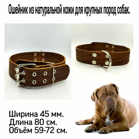 Ошейник из натуральной кожи, однослойный для собак крупных пород. Ширина 45 мм, длина 80 см, объём шеи 59-72 см.