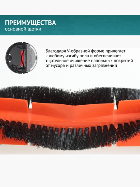 Сменная щетка предназначена для замены аналогичной детали, износившейся вследствие длительного использования. Тщательно очищает различные напольные покрытия от мусора и загрязнений разного типа. Эффективной работе способствует особая форма данного изделия – V-образная конструкция. При этом она рассчитана на высокую скорость вращения – до 1350 оборотов в минуту. Плавающий принцип эксплуатации основной щетки и специальные антискользящие подшипники позволяют роботу всего за один проход убирать пыль и шерсть домашних животных. Это повышает эффективность уборки, продлевает срок службы пылесоса и минимизирует расходы электроэнергии. Такой подход дает возможность соблюдать идеальную чистоту в доме, офисе или квартире без каких-либо неудобств. Подходит для моделей: Roborock E4 (E452-02) Roborock E5 (E552-02) Xiaomi Mi Robot Vacuum Cleaner (SDJQR01RR, SKV4000CN) Xiaomi Mi Robot Vacuum Cleaner (SDJQR02RR, SKV4022GL) Xiaomi Mi Robot Vacuum Cleaner 1S (SDJQR03RR) Roborock S4 Roborock S5 Max (S5 E02-02) Roborock S5 Sweep One (S50, S55, S502-00) Roborock S5 Sweep One (S51, S52, S502-02) Roborock S6 Roborock S6 MaxV (S6V52-02) Roborock S6 Pure (S6P52-02) Roborock Xiaowa E2 (E20, E25, E202-00) Roborock Xiaowa E3 (E35) Roborock Xiaowa Lite (C1, C10, C102) Щетка неразборная.