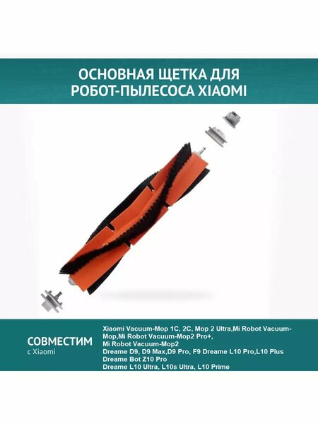 Сменная щетка предназначена для замены аналогичной детали, износившейся вследствие длительного использования. Она тщательно очищает различные напольные покрытия от мусора и загрязнений разного типа. Щетка легко снимается и имеет плавающую конструкцию. Антискользящая система позволяет быстро убраться в комнате, эффективно очистить поверхность от пыли, грязи, шерсти домашних животных. Подходит для: Xiaomi Vacuum-Mop 1C, 2C Dreame F9 Dreame D9 Dreame D9 Max (RLD33GA) Dreame D9 Plus Dreame Robot Vacuum D9 Pro Dreame L10 Plus Dreame L10 Prime Dreame L10 Pro Dreame L10 Ultra Dreame L10s Pro Dreame L10s Ultra Dreame Bot Z10 Pro Dreame D10 Plus Xiaomi Mi Robot Vacuum Mop (STY1J01ZHM, STYTJ01ZHM) Xiaomi Mi Robot Vacuum Mop 2 Pro+, Mijia 1T (STYTJ02ZHM) Xiaomi Mi Robot Vacuum Mop, Mijia 1C (SKV4093GL, SKV4073CN) Xiaomi Mi Robot Vacuum-Mop 2 (BHR5055EU, BHR5958RU) Xiaomi Mijia 2C (STYTJ03ZHM, XMSTJQR2C) Xiaomi Mijia Omni 1S Xiaomi Robot Vacuum S10+ (B105, BHR6368EU) Xiaomi Robot Vacuum X10 (B102GL, BHR6068EU) Xiaomi Trouver LDS Finder Xiaomi Vacuum Mop 2 Ultra (STYTJ05ZHMHW, BHR5195EU) Dreame X10 Pro Xiaomi X10+ (B101GL, BHR6363EU) Xiaomi X20+