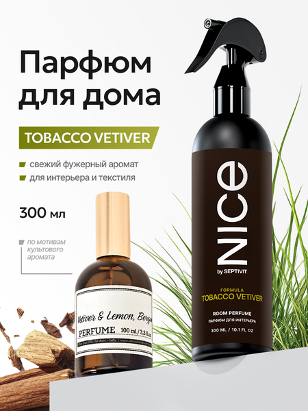 NICE by Septivit - эксперт в сфере эко продуктов для ухода за собой и домашнего уюта. Вся продукция компании разработана в собственной лаборатории SEPTIVIT: полностью безопасна для здоровья и экологии, а также не тестируется на животных. Парфюм для дома "Tobacco Vetiver" объемом 300 мл имеет теплый аромат ветивера с глубокими нотами табачного листа, создающий атмосферу уюта, комфорта и расслабления. Этот универсальный освежитель воздуха поможет создать уютную благоухающую атмосферу у вас дома. Гипоаллергенный парфюм для дома на водной основе безопасен для природы и человека. Ароматизатор не только приносит освежающий аромат, но и нейтрализует стойкие неприятные запахи от домашних животных, приготовления пищи, туалета, табачных изделий и работает как антитабачный освежитель для дома. Спрей для дома с ароматом используют как для комнаты, туалета и ванны, так и для машины, шкафа для одежды и белья, гаража и других помещений. Удобный спрей дозатор помогает равномерно распылять средство. способ применения. Хорошо встряхните флакон. Держа его вертикально, распылите в нужном количестве по помещению. При необходимости повторите. Нейтрализатор запаха имеет приятный аромат и может быть использован как диффузор для интерьера. Идеальный выбор для тех, кто хочет создать в своем доме атмосферу комфорта и уюта. Поддерживайте экологию и получайте удовольствие от уютной атмосферы у себя дома вместе с ароматизатором от NICE BY SEPTIVIT. Нажмите на логотип продавца SEPTIVIT Premium, чтобы ознакомиться с широким ассортиментом экологически чистой продукцией бренда.