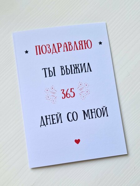 Открытка для парня на год отношений "Ты выжил 365", 21x15 см, с конвертом