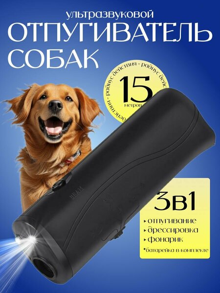 Ультразвуковое устройство ля отпугивания и тренировки собак. Схема работы основана на генерации ультразвуковых импульсов. Безопасно для людей. Так же предусмотрен режим «обучение», который можно использовать для обучения домашних питомцев. Решетка ультразвукового излучателя и два сверх ярких светодиода расположены на передней части корпуса. Перед использованием необходимо установить элемент питания, батарейка "Крона" (в комплекте). Работоспособность можно проверить в режиме «фонарь». Яркий свет светодиодов соответствует нормальному функционированию прибора. При недостаточно ярком или тусклом свете светодиодов, прибор будет работать малоэффективно, для нормальной работы следует заменить элемент питания. Переключатель режимов работы расположен на нижней части корпуса.