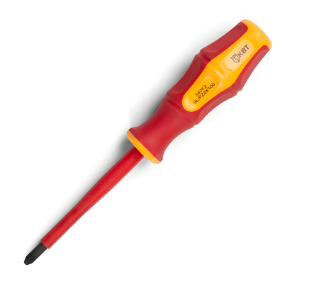 Отвертка диэлектрическая PZ-FL2х100 серия профи предназначена для выполнения работ под напряжением до 1000 В. Это обеспечивает безопасность и надежность при работе с электрическими компонентами. Двухкомпонентные эргономичные рукоятки с мягкими прорезиненными вставками обеспечивают комфортное и надежное удержание инструмента в руке. Специальная форма рукоятки не позволяет инструменту скатываться с наклонной поверхности, что повышает удобство использования. Маркировка на торце рукояток с обозначением типа профилей позволяет быстро и точно определить тип профиля, что облегчает работу с различными видами винтов. Стержни отвертки изготовлены из хром-ванадиевой стали, что обеспечивает прочность и долговечность инструмента. Намагниченные вороненые наконечники позволяют легко и быстро захватывать винты и гайки. Отвертка диэлектрическая PZ-FL2х100 серия профи поставляется в упаковке, содержащей одну отвертку. Размер крестообразного наконечника PZ1 и длина стержня 100 мм делают этот инструмент удобным и функциональным для широкого спектра задач.