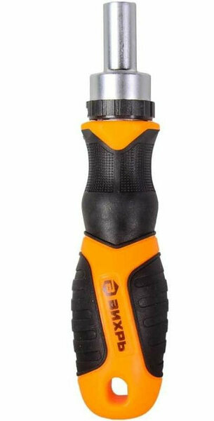 Трещоточный механизм - есть; Намагниченный наконечник - да; Длина стержня - 25 мм; Материал рукояти - прорезиненная; Диэлектрическое покрытие - нет; Общая длина - 150 мм; Форма ручки - Прямая; Вес нетто - 0.221 кг; Материал стержня - Cr-V; Материал насадок - CrV ;