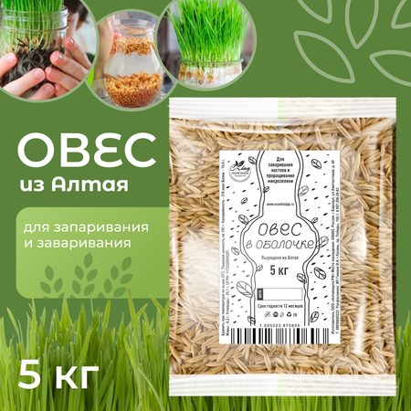 Овес в оболочке для настоев, 5 кг для запаривания заваривания проращивания микрозелени